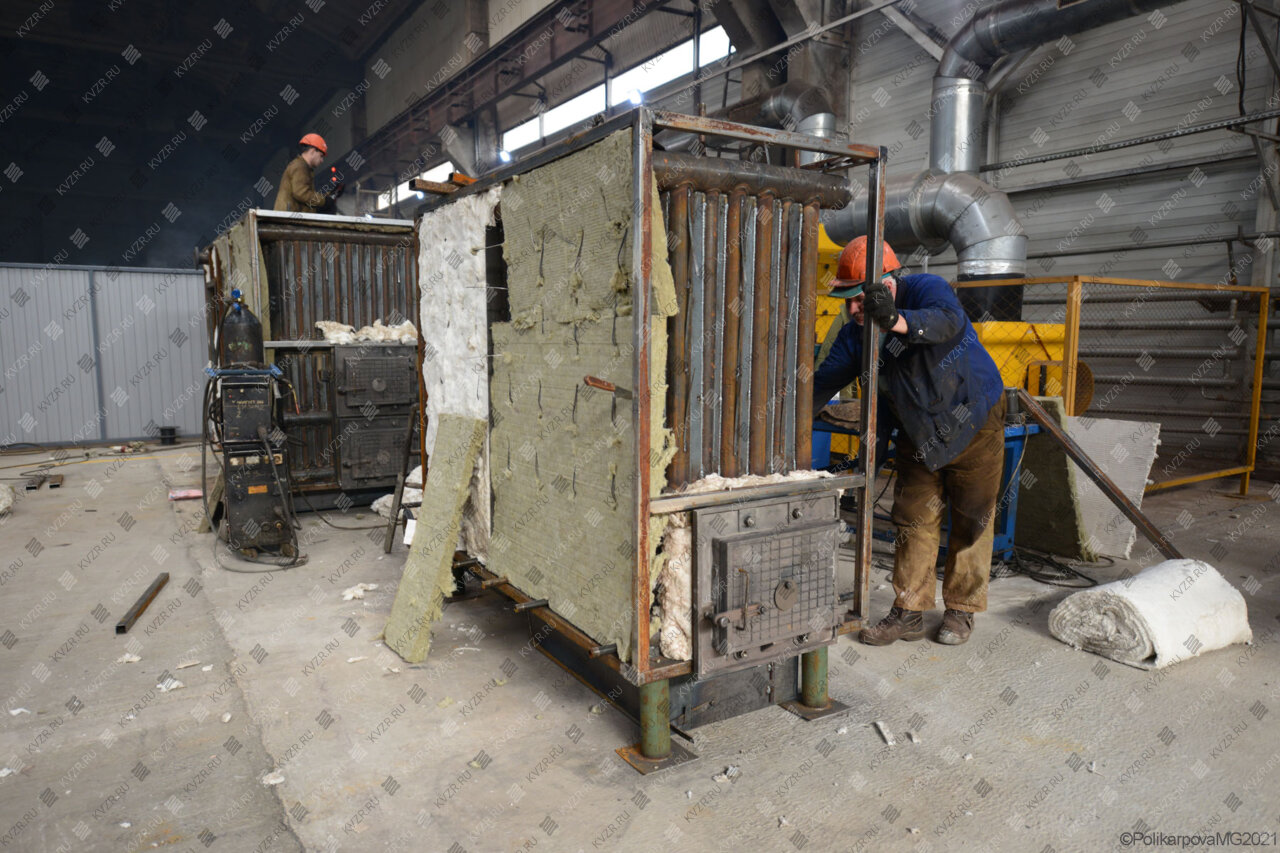 Все водогрейные котлы 0 5 МВт нашего производства - стальные, горизонтальные, водотрубные, прямоточные и компактные. Трубная часть котельного блока выполняется из труб различных диаметров, материал труб сталь 10 и 20. Блок снаружи обваривается стальной охлаждаемой полосой, поэтому в наших котлах исключена возможность задымления котельного зала. Снаружи на каркас из профильной трубы и швеллера крепится утеплитель и декоративная обшивка из полимерного листа. В обшивке предусмотрены лючки для очистки поверхностей нагрева.