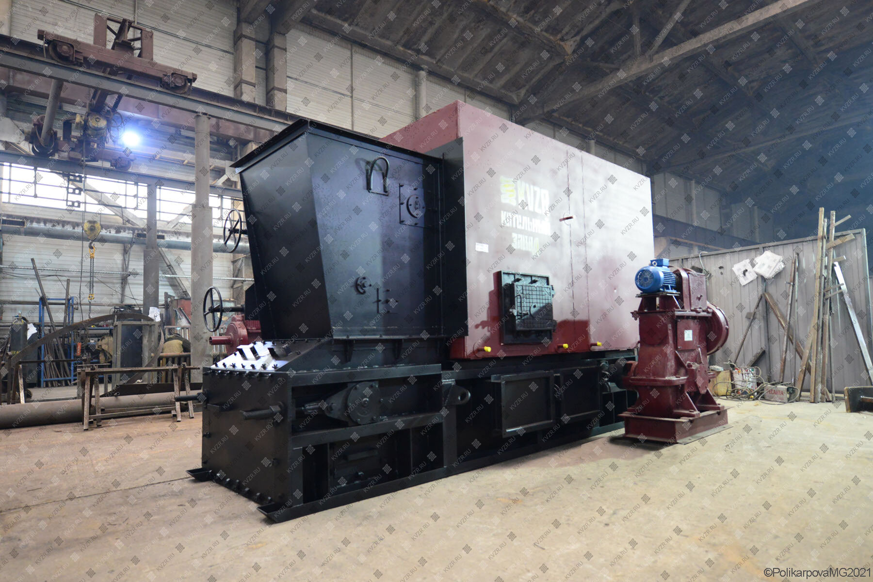 Отечественные отопительные водогрейные котлы на твердом топливе промышленные с топками ЗП РПК поставляются двумя блоками. Топочный блок и топка с опрокидывающими колосниками. Топливо в бункер забрасывателя подается транспортером топливоподачи. На фронте установлена плита для крепления забрасывателя, на фронте и на боковой стенке аппарата установлены дверки для обслуживания топки и контроля процесса горения.