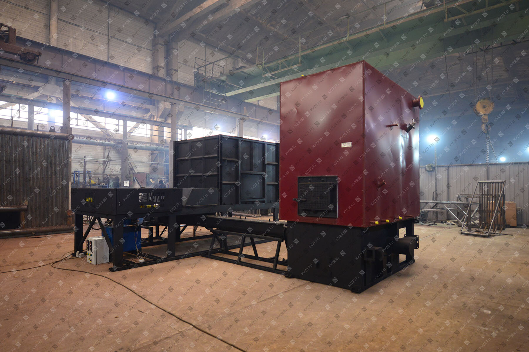 Бункер ворошитель под опилки выполнен в виде прямоугольной емкости с открытой верхней частью для загрузки сыпучих материалов. Он размещен на опорной раме, для распределения и передачи весовой нагрузки от загруженного материала и веса самой конструкции. Разгрузочное окно выполнено в нижней части передней торцевой стенки бункера-ворошителя. Разгрузка выполняется при помощи подвижных лопат. Так же лопаты выполняют функцию ворошителя, предотвращая слеживания материала. Контроль хода лопат осуществляется при помощи концевых выключателей, установленных на опорной раме по ходу их движения. Лопаты приводятся в движения гидравлическим приводом. Гидропривод установлен на опорной раме бункера перед разгрузочным окном. В непосредственной близости от гидростанции гидропривода установлен щит управления.