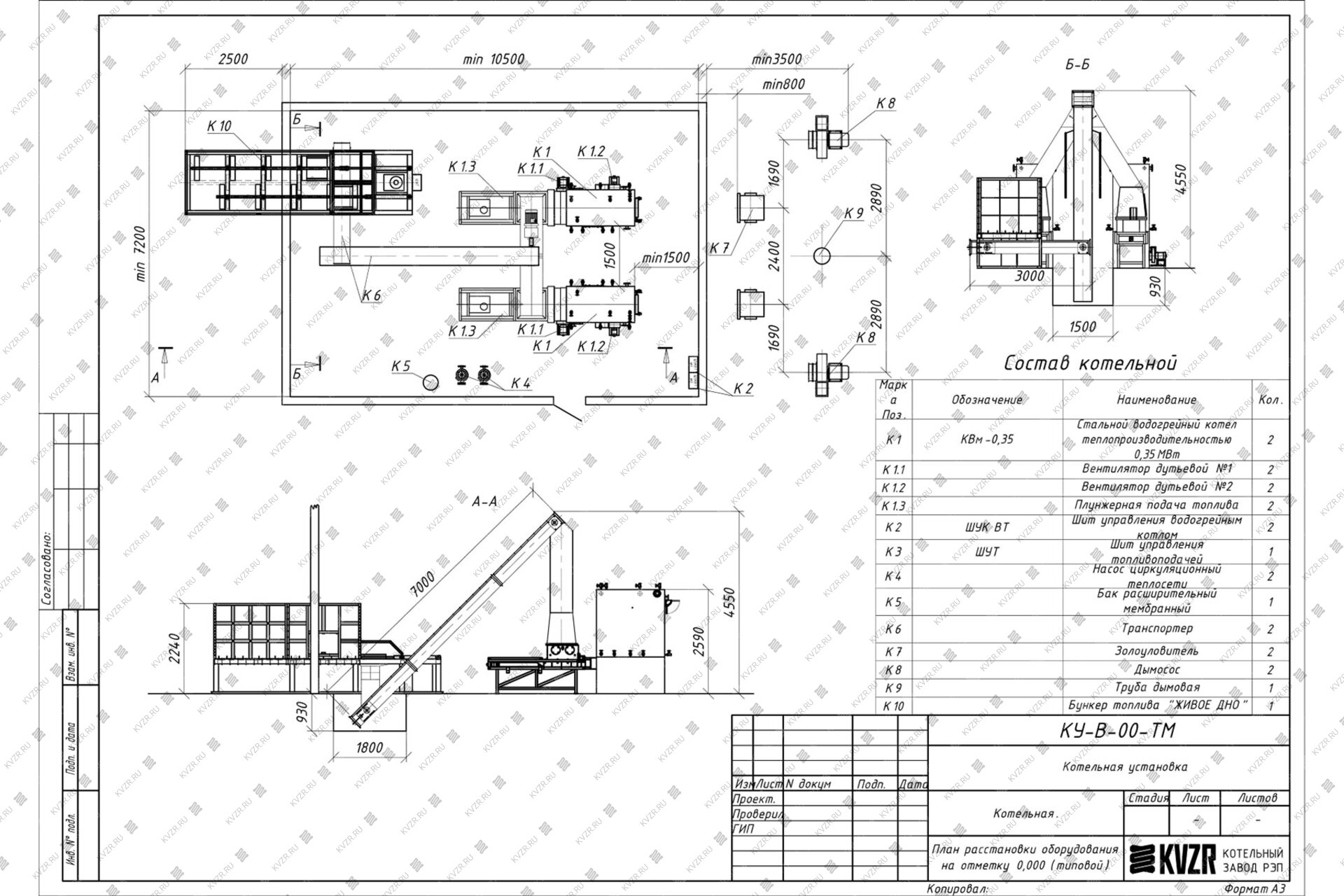 Монтаж водогрейного котла на щепе 700 кВт и вспомогательного оборудования в котельной должно производиться в соответствии с проектом и учетом требований СП 89.13330. 2016 «Котельные установки. Актуализированная редакция СНиП II-35-76» и «Правил устройства и безопасной эксплуатации паровых котлов с давлением пара не более 0,07 МПа (0,7 кгс/см2), водогрейных котлов и водоподогревателей с температурой нагрева воды не выше 388 К (115 С). Правильный монтаж котла – залог его надежной и долгой работы.